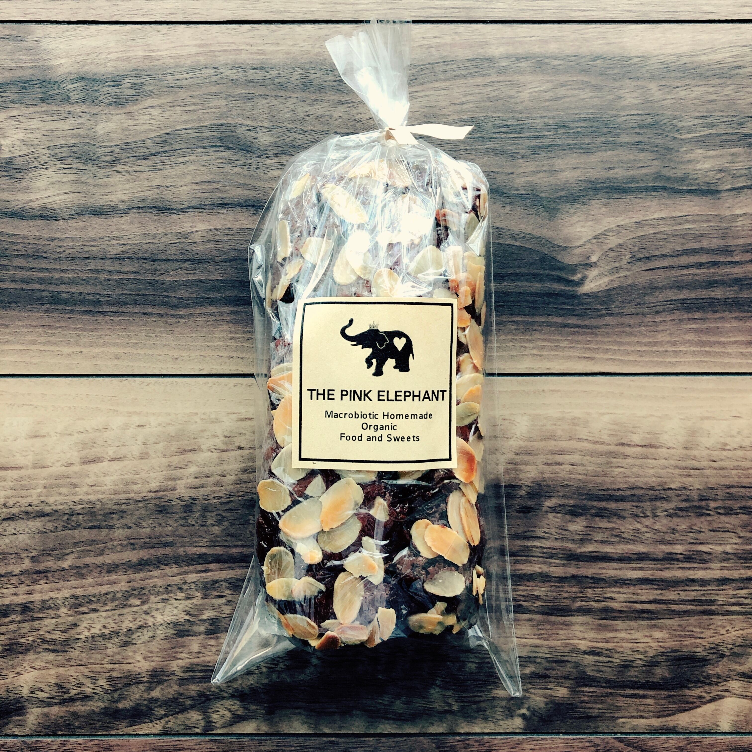 たくさんの有機ナッツと有機カカオニブがアクセントになった、甘さ控えめのビターなヴィーガンケーキです。